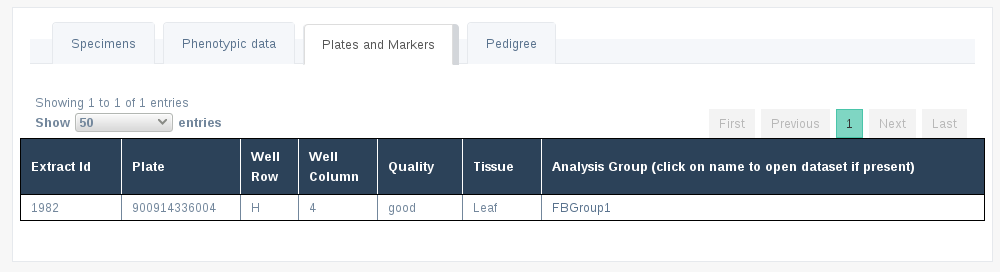 After a successful import, all genotypes will be available in the list of the Genotypes Page as seen below: