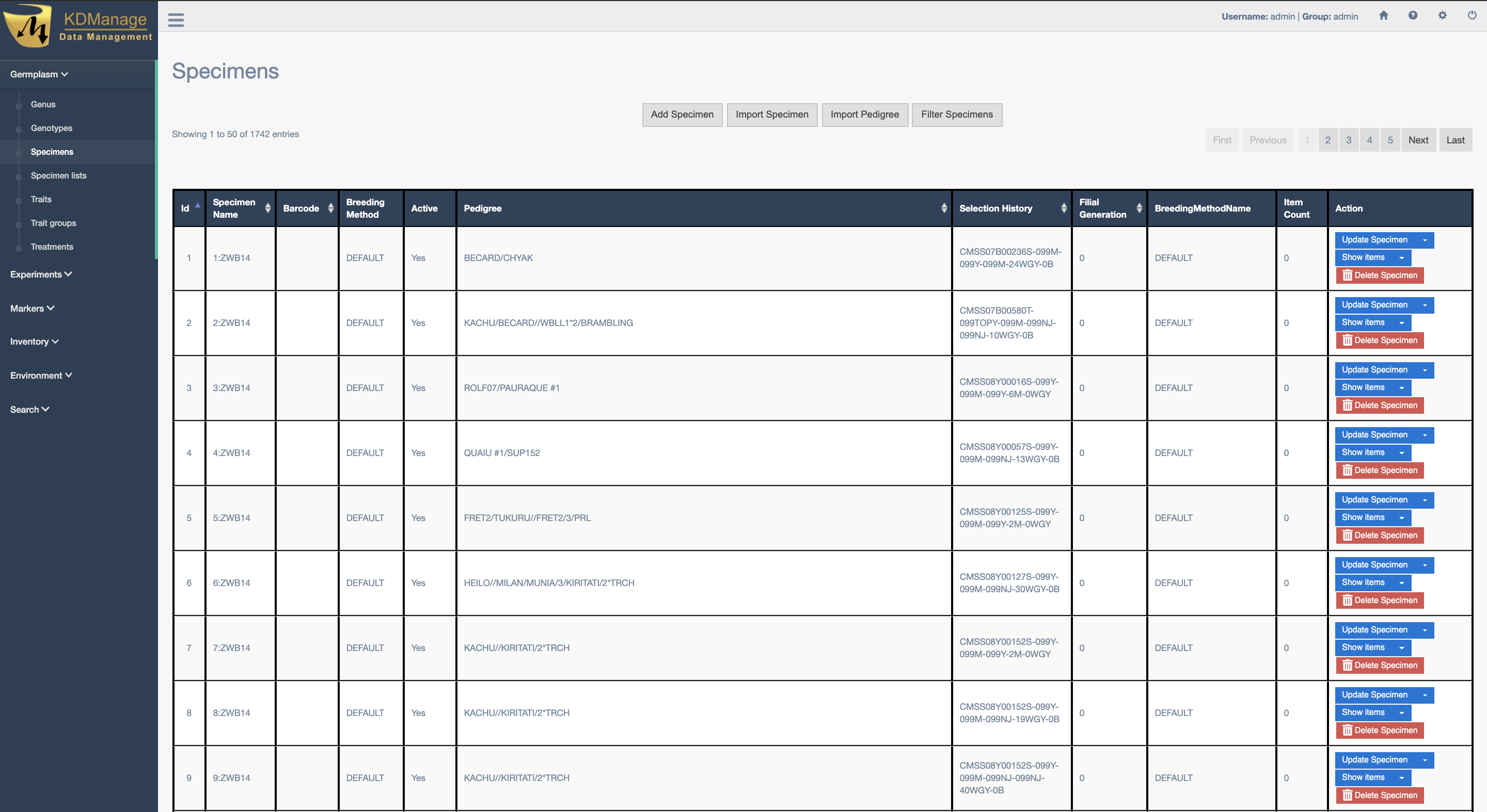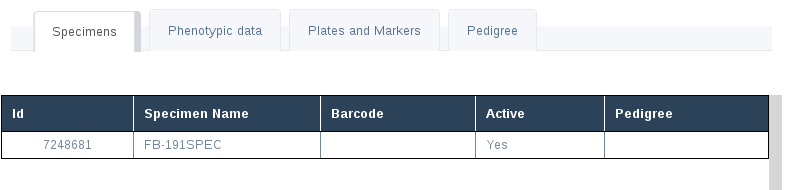 | Create Specimen | Create a new Specimen and link it to current Genotype |