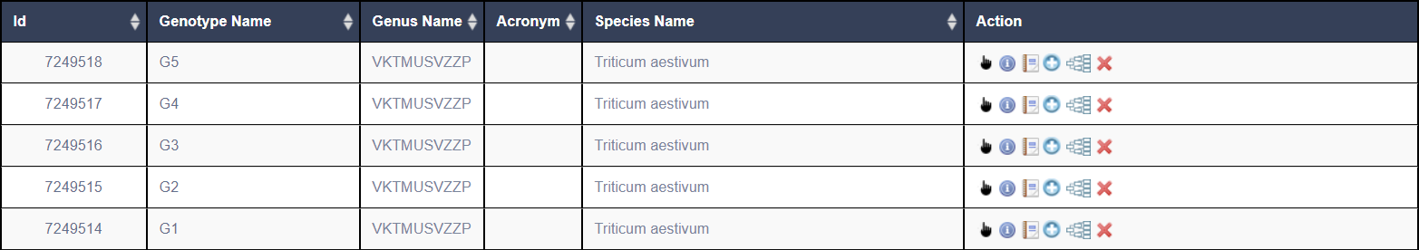 For the management of Genotypes, there are various actions to help manage Genotypes. The following table explains what they do and use cases: