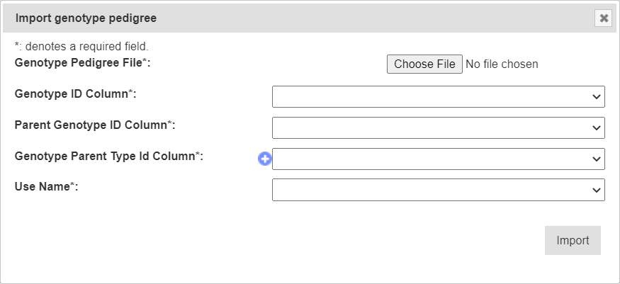 | Genotype File | Mandatory | Select the input file for the import. |