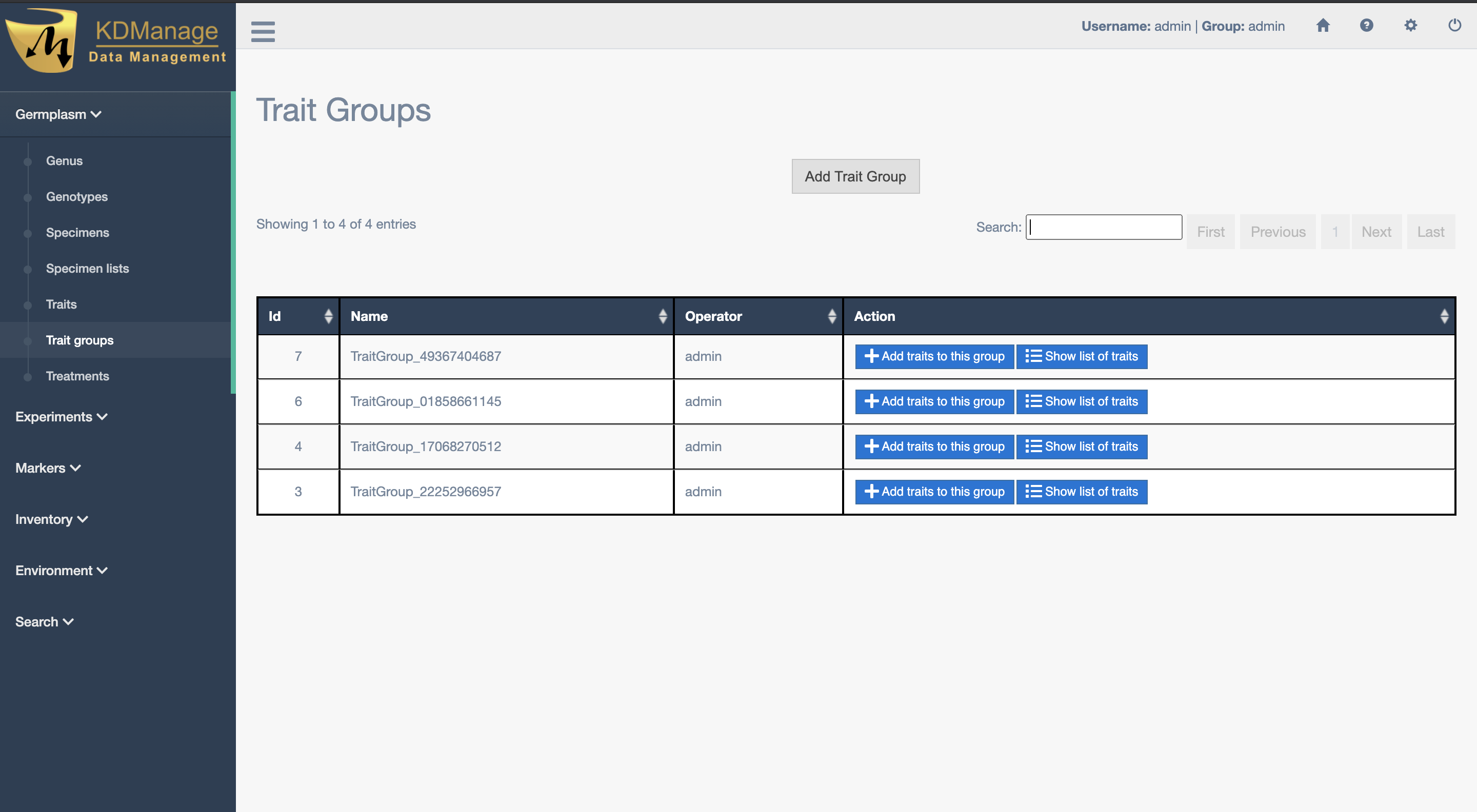 Traits can be added to trait groups which allows for traits to be added in groups for convenience. Trait groups are listed in the Trait Groups Page as seen in the image below: