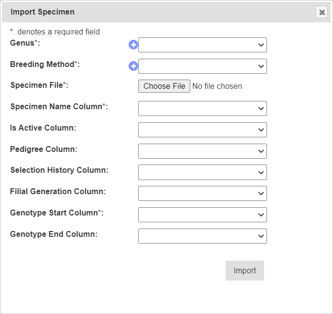 | Breeding Method | Mandatory | Select an existing breeding method for all the specimens in the input file. |